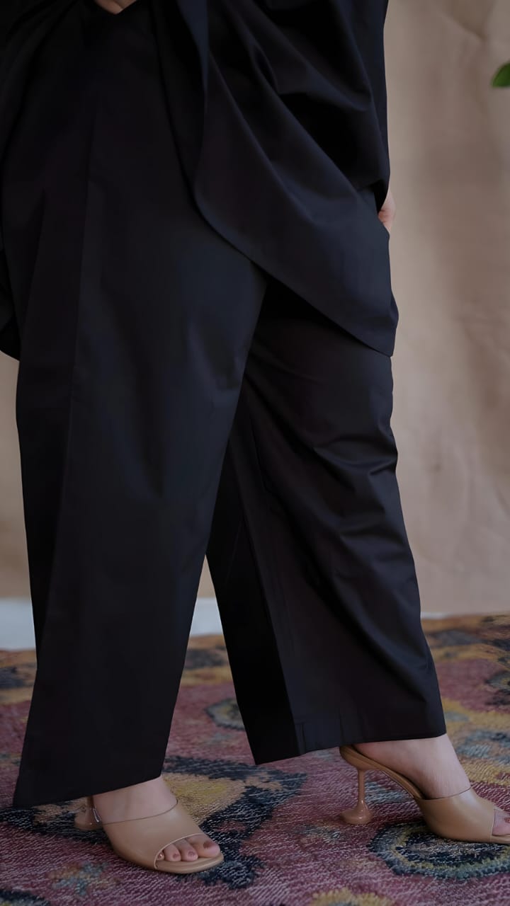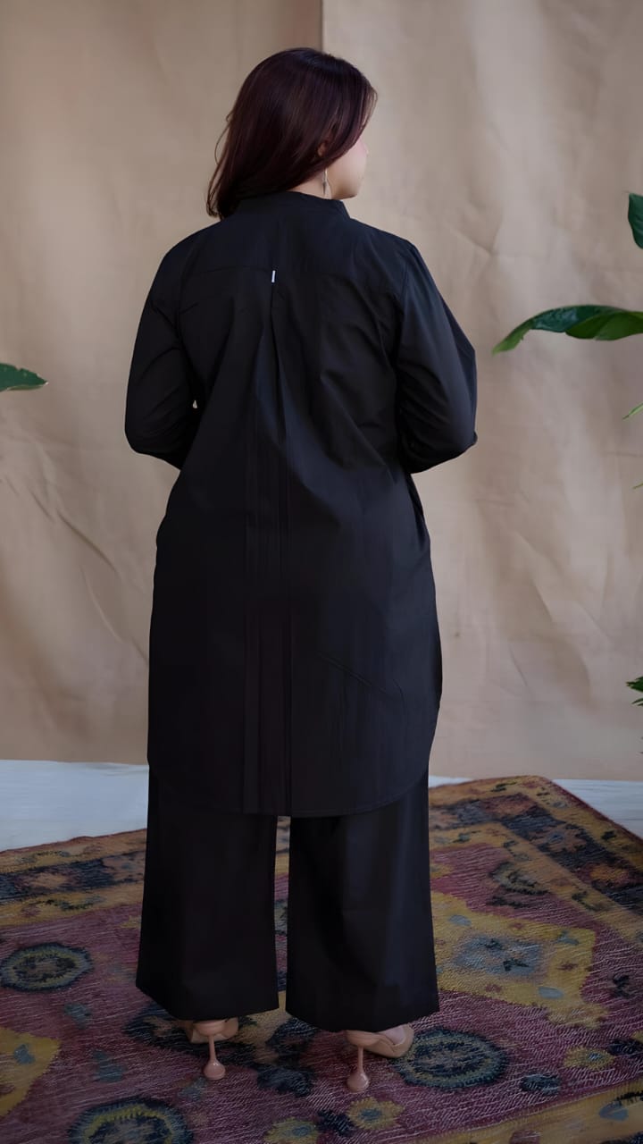 Black Poplin Cotton Embroidered Two Piece Co-Ord Set