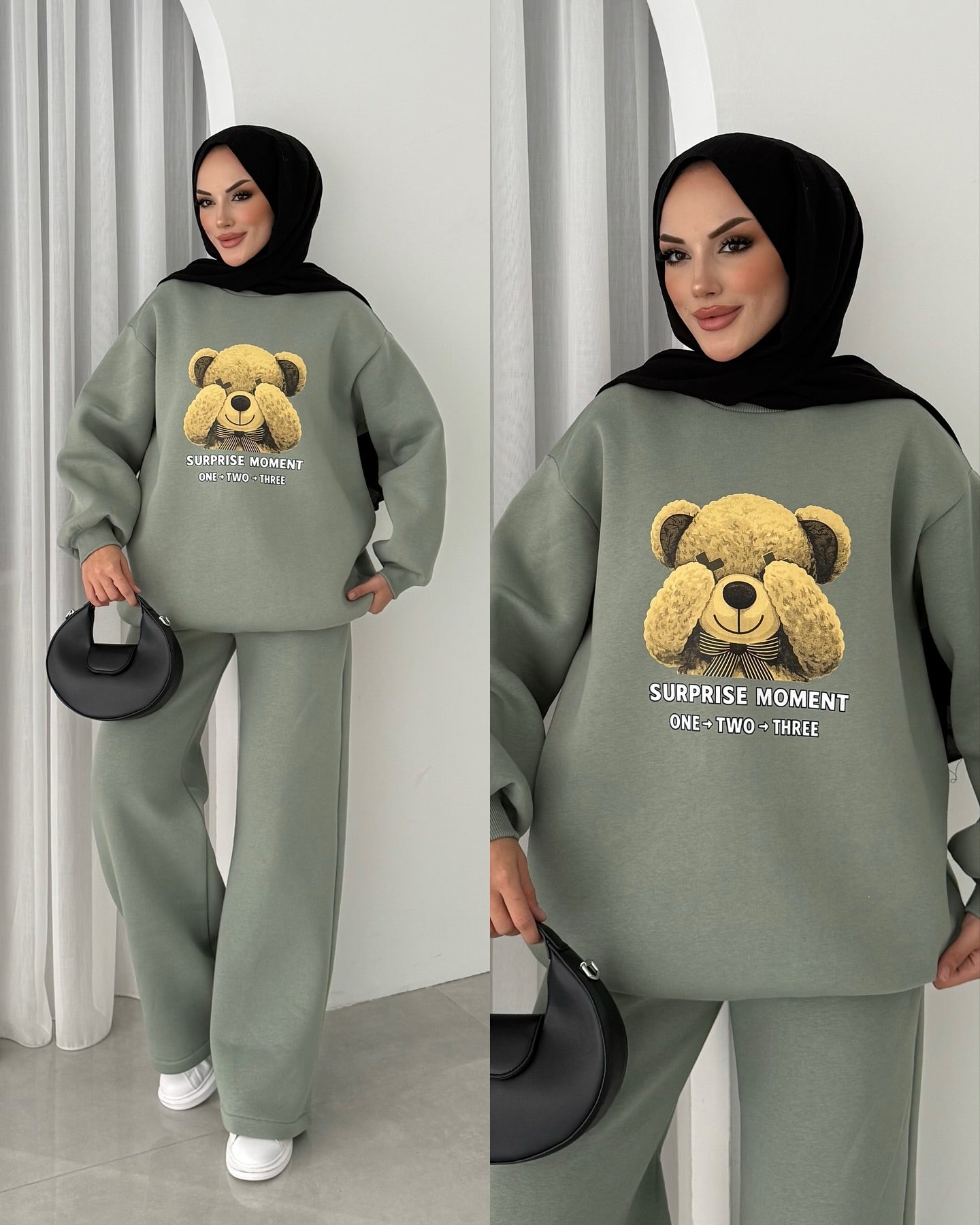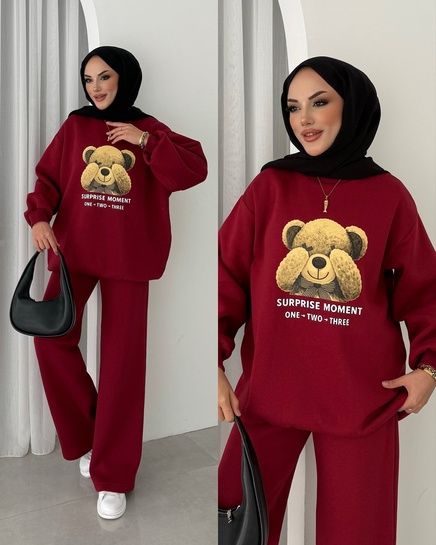 Design Details: Introducing the 'Camilla' fleece co-ord set: your new go-to for oversized comfort and instant cozy style.Perfect for effortless modest dressing, this two-piece features a premium fabric and a charming teddy bear graphic.